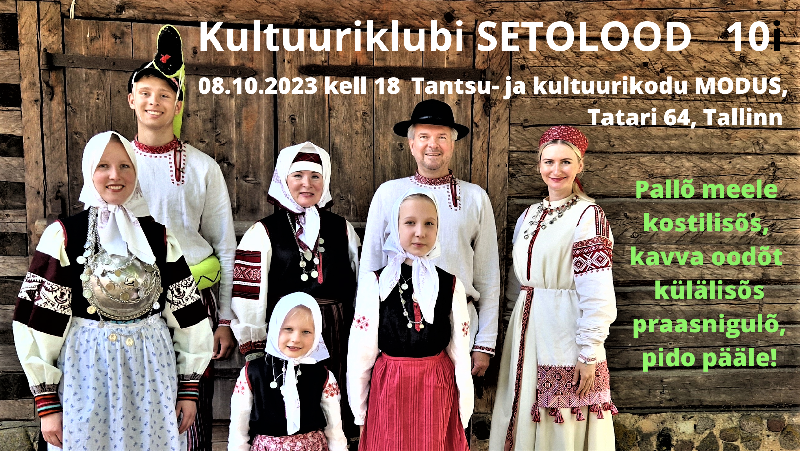 2013.a. septembrist tegevust alustanud Kultuuriklubi SETOLOOD tähistab juubelit – 10.sünnipäeva. Millega täpsemalt on tegu, kuidas eristutakse kõigist teistest setosid ühendavatest kooslustest ning kuhu on tänaseks välja jõutud, saab teada kohapeal.